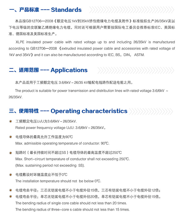 3.6/6kV~26/35kV交联聚乙烯绝缘电力电缆