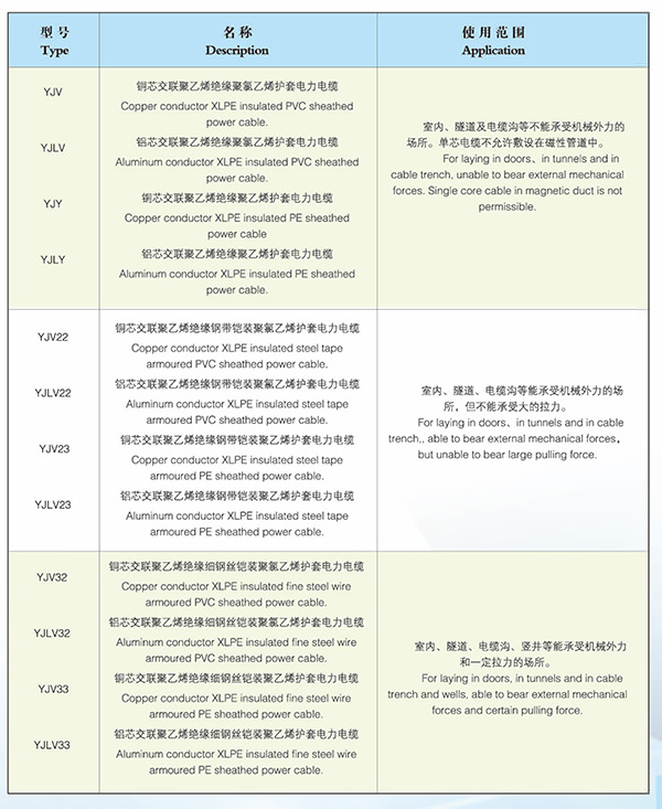 0.6/1kV交联聚乙烯绝缘电力电缆